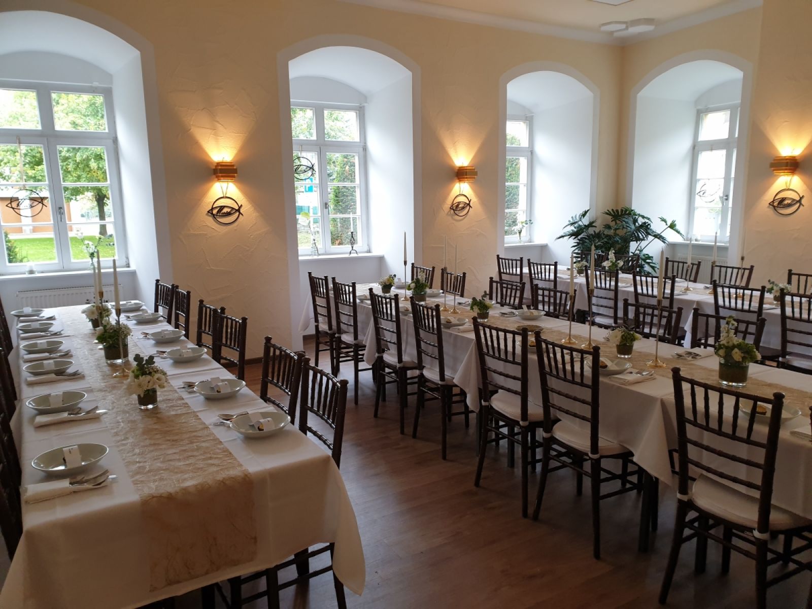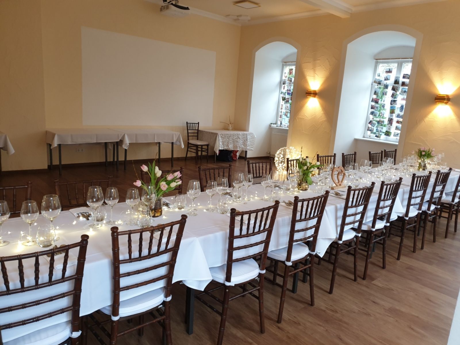 Hochzeiten und andere Festlichkeiten werden in der romantischen Atmosphäre zu einem unvergesslichen Erlebnis; Bewirtungsmöglichkeiten im Schloss für bis zu 70 Personen sowie 11 Zimmer zum Übernachten.