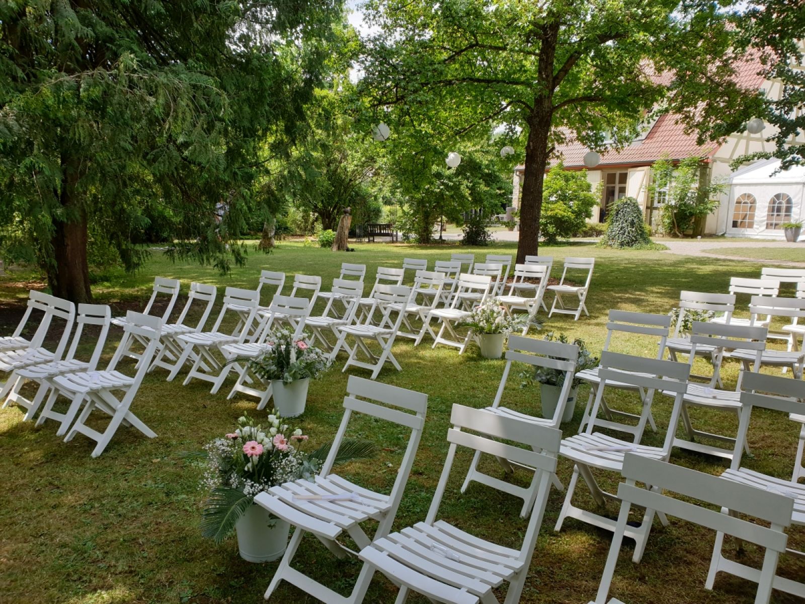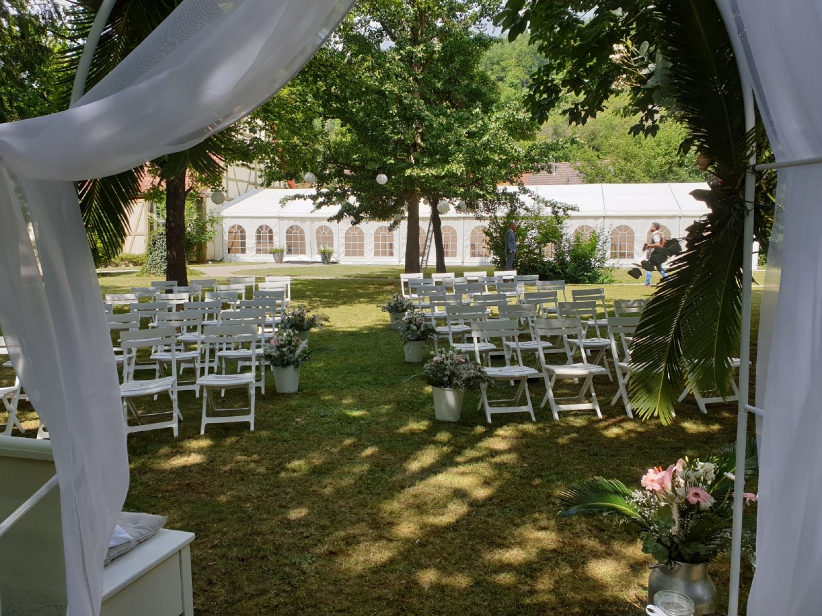 Der Schlosspark bildet ebenfalls den optimalen Rahmen für Hochzeiten und andere Festlichkeiten für bis zu 120 Personen im Pavillion.