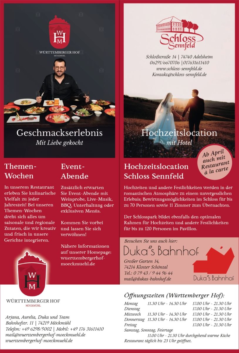 Das Hotel „Württemberger Hof“ liegt mitten in Möckmühl, an Stadtmauer und Burg, nördlich von Heilbronn. „Leben an der Jagst“ ist der Slogan von hier. Die urige Fachwerkstadt, bietet für Radfahrer, Wanderer und Kulturinteressierte viele Freizeitaktivitäten an.